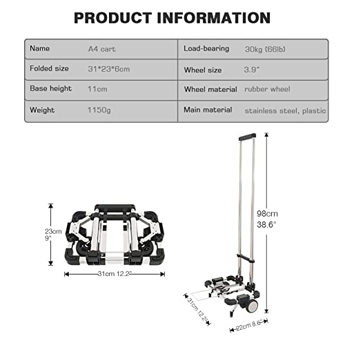 【Tragbarer Rollwagen】 Der Mini-Einkaufswagen kann in einem Rucksack getragen werden, daher so vollschlank denn ein Buch. Wenn Sie von der Werk kommen, können Sie direkt in den Supermarkt gehen, ohne etwas anderes vorzubereiten. Der A4-Wagen ist etwas größer und hat eine stärkere Tragfähigkeit.