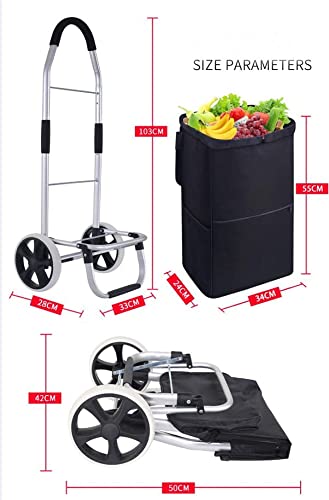 Tragbarer Trolley / Faltbarer Einkaufstrolley / 2 Räder, abnehmbare Taschen und verstellbare Griffhöhe, Ladekapazität 40…