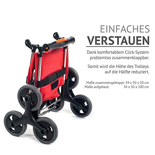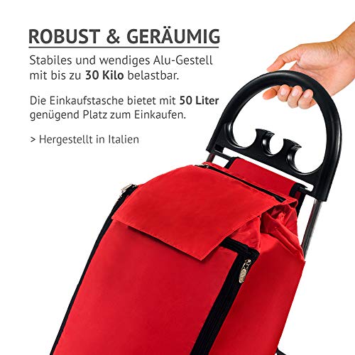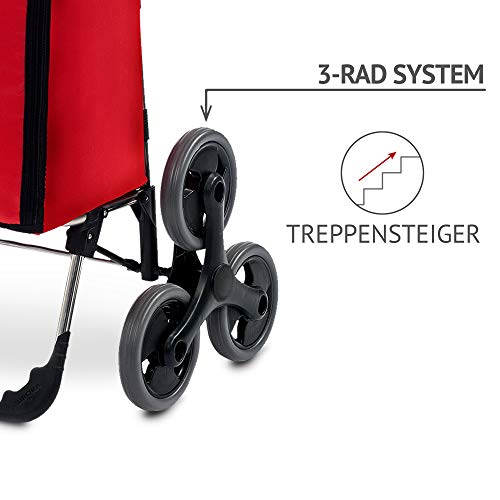 Treppensteiger Einkaufstrolley Seena in rot mit 50L & Kühlfach – Einkaufsroller Trolley bis 30kg belastbar – Gewicht nur…