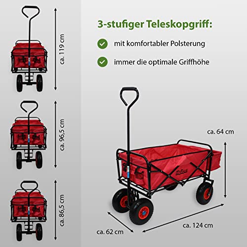 Faltbarer Bollerwagen mit PU-Rädern = pannensicher ür eine leise und reibungslose Fahrt