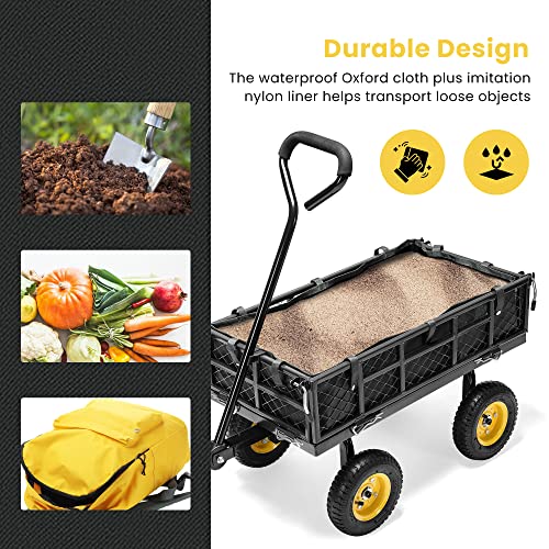 Vielfältige Einsatzmöglichkeiten: Unser Transportwagen ist ungeachtet alledem mit einer wasserdichten Oxford-Stoffauskleidung ausgestattet, die sich für den Transport loser Gegenstände wie Erde und Sand eignet, solange die mitgelieferte Netzabdeckung die Reinigung leichterer, immerhin großer Gegenstände erleichtert beim Bewegen herunterfallen.