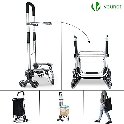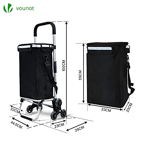 VOUNOT Aluminium Einkaufstrolley Treppensteiger, Trolly Einkaufswagen Klappbar, Hackenporsche mit 6 Räder und Kühlfach, Wasserdicht, 58L, Schwarz