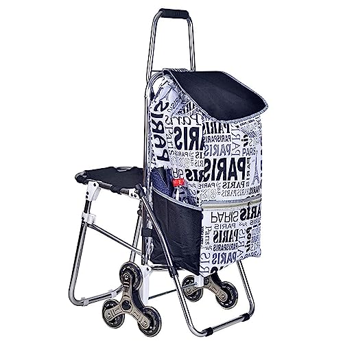 Wagen Einkaufstrolleys Multifunktions-Einkaufswagen, zusammenklappbarer Einkaufswagen mit Eisenrahmen, 6-Rad-Einkaufswagen, wasserdichtes Futter, mit Leiterfunktion, tragbarer Einkaufstrolley