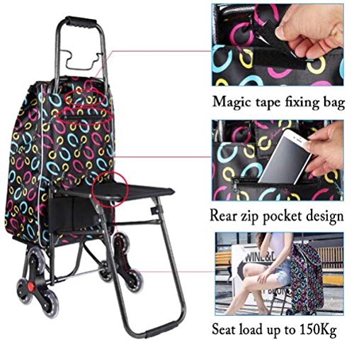 Tragbares, faltbares Design – dieser Trolley ist leicht, einfach zu transportieren, rutschfester Griff, bequemer Griff, groß genug und muss sich nicht bücken, hilft älteren, Menschen mit Rückenproblemen und schwangeren Frauen beim wöchentlichen Einkaufen. Wenn er nicht in Gebrauch ist, kann der Trolley flach zusammengefaltet werden und passt perfekt in Ihren Kofferraum des Autos, unter dem Bett, im Schrank oder in der Garage. Mit Klappsitz. Du bist müde, sitzt und jederzeit und überall. Sitzlast: 150 kg.