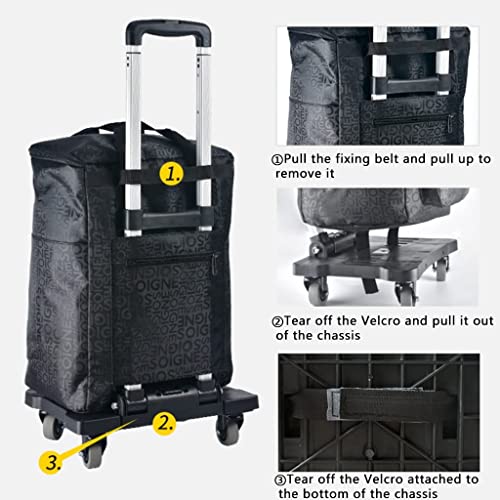 【Multifunktionale Verwendung】: Verwenden Sie es als Einkaufskorb, Lebensmittelwagen, Mehrzweckwagen, faltbarer Trolley und integrierter Spezialwagen mit Rädern, fast keine Montage erforderlich; Nach dem Herumgammeln der Tasche wird es zu einem leichten Trolley.