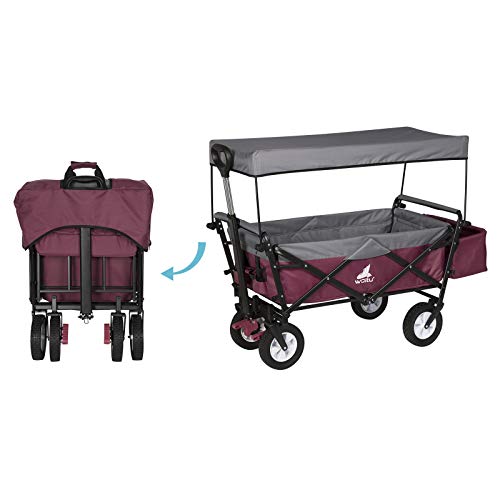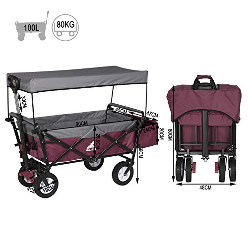 WOLTU Bollerwagen faltbar Handwagen Gartenwagen mit Dach, Rollen mit Bremse, Strandwagen mit Sonnenschutz, für den Garten Camping Kinder, 80 kg belastbar, Fuschia