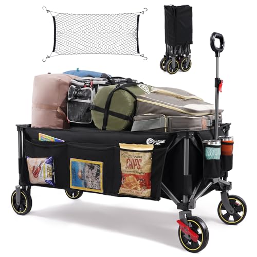 MULTIFUNKTIONALER HANDWAGEN: Entfaltete Größe: 86x93x54 cm, Tragkraft: 80 kg. Der faltbare Bollerwagen ermöglicht einen praktischen und zuverlässigen Transport bei Outdoor-Aktivitäten denn Camping, Strandausflug, Picknick, Einkaufen oder von Haustieren und Kindern. Er kann Alias statt die Lagerung drinnen dienen