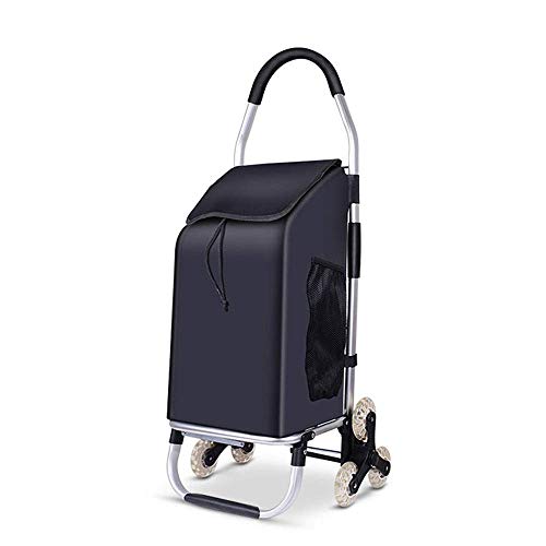Dieser Einkaufswagen ist mit gummierten Rollen ausgestattet, die das Einkaufen einfacher und bequemer machen und das Treppensteigen abschwächen, wodurch er für ältere Menschen oder Personen mit eingeschränkter Mobilität sinnvoll ist.