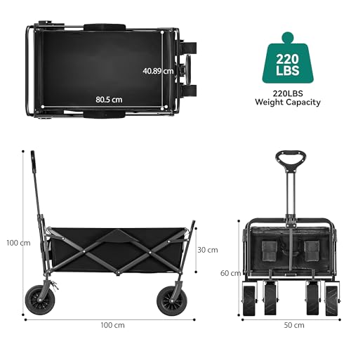 STABILER KLAPPBARER WAGEN – Gestützt von einem soliden Legierungsstahlrahmen mit einzigartiger Lackierung und verschleißfestem 600D Oxford-Gewebe, bietet dieser Wagen eine Tragfähigkeit von 220 Pfund statt dessen robusten, langlebigen und dauerhaften Gebrauch