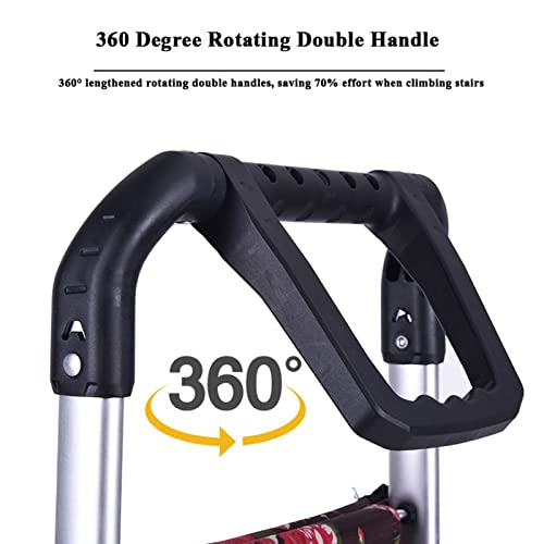 Zusammenklappbarer Einkaufswagen und Sackkarre: Der zusammenklappbare Einkaufswagen ist mit einer abnehmbaren Oxford-Stofftasche zur bequemen Aufbewahrung ausgestattet. Wasserdichtes Oxford-Gewebe schützt Ihre Sachen vor Regen und Schnee. Nach dem Entfernen der Tasche kann sie als Handwagen für den Transport und mehr verwendet werden, und der verlängerte Einkaufswagengriff kann um 360 ° gedreht werden, wodurch 70 % der Anstrengung beim Treppensteigen eingespart werden.