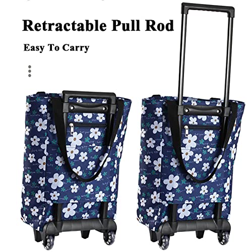 Faltbare Einkaufs-Umhängetasche und Trolley-Wagen: Der faltbare Einkaufswagen ist mit einer Oxford-Stofftasche zur bequemen Aufbewahrung ausgestattet. Wasserdichtes Oxford-Gewebe schützt Ihre Sachen vor Regen und Schnee. Wenn die gekauften Traktat leicht sind, kann sie als Umhängetasche verwendet werden; bei schweren einkäufen lässt sich die teleskopstange ausziehen und als einkaufswagen nutzen. Es ist kompakt und leicht, spart mehr Platz.