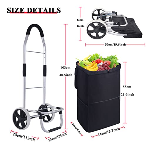 Zusammenklappbarer Einkaufswagen und Sackkarre: Der zusammenklappbare Einkaufswagen ist mit einer abnehmbaren Oxford-Stofftasche zur bequemen Aufbewahrung ausgestattet. Wasserdichtes Oxford-Gewebe schützt Ihre Sachen vor Regen und Schnee. Nach dem Abschütteln der Tasche kann sie als Handkarre für den Transport, Umzug und mehr verwendet werden. Sie können es in der Hand tragen, in den Kofferraum des Autos, in die Ecke oder unter das Bett legen. Es ist kompakt und leicht, spart mehr Platz.