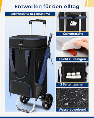 Ytonet Einkaufstrolley Klappbar mit Kühlfach, Einkaufswagen Groß Wasserdicht mit Starrer Bodenplatte für 55 Liter/68 kg, 3 in1 Shopping Trolley Sackkarre & Einkaufstasche mit Großen Rädern, Schwarz