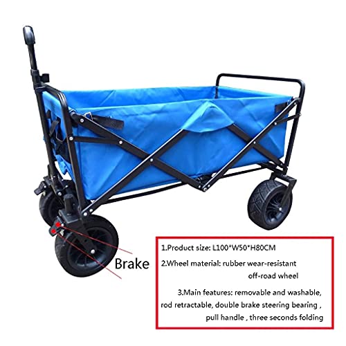 ZATTYDV Zusammenklappbarer Gartenwagen, robuster Wagen, multifunktionaler Einkaufswagen für Camping im Freien, mit 4 Strandrädern, Tragkraft: 80 kg
