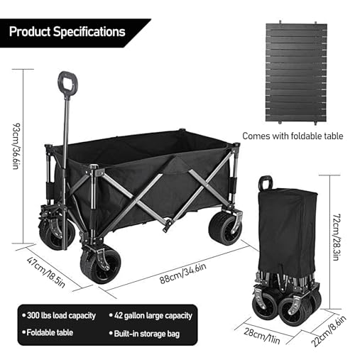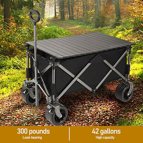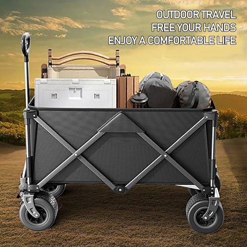 Zusammenklappbarer Bollerwagen, tragbarer Strandwagen mit einer Tragkraft von 136 kg, robuster, zusammenklappbarer Allzweckwagen für Camping, Garten, Sport, Picknick, Einkaufen
