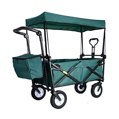 Zusammenklappbarer Gartenwagen mit Überdachung, robuster Wagen, Gepäckwagen für Kinder, tragbarer Einkaufswagen für Camping im Freien, Schiebe-/Ziehwagen, Tragkraft: 80 k