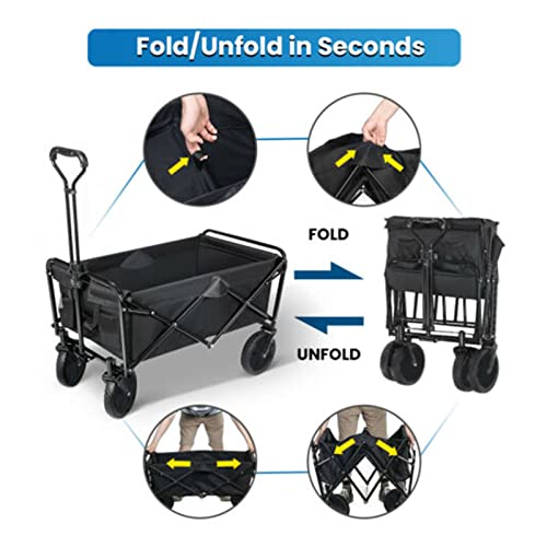 Zusammenklappbarer, zusammenklappbarer Garten- und Outdoor-Park-Picknickwagen, zusammenklappbarer tragbarer Handwagen für Sport, Strand, Camping, Lebensmittelgeschäft, zusammenklappbarer Lebensmittel